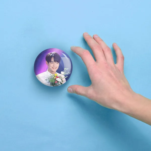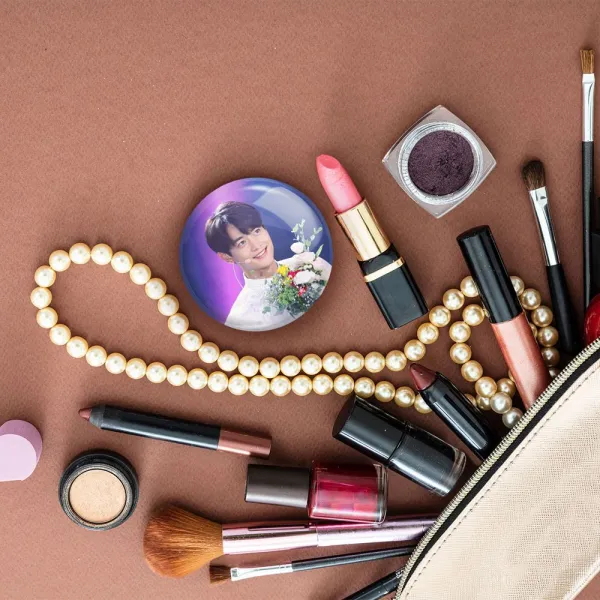آینه های جیبی مینهو گروه شاینی Shinee خندالو دایره ای به قطر 7.5 سانتی متر می باشد که نه خیلی بزرگ و غیر قابل استفاده در کیف آرایشی ست و نه خیلی کوچک که تصویر خاصی در آن مشاهده نشود. سایزی استاندارد و کارآمد دارد و مناسب قرار گیری در کیف لوازم آرایش و کیف های کوچک دستی نیز هست.