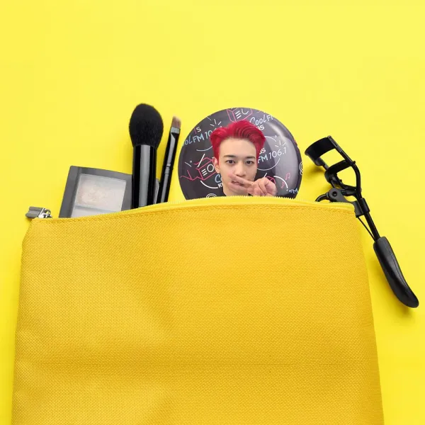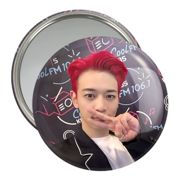 آینه های جیبی مینهو گروه شاینی Shinee خندالو دایره ای به قطر 7.5 سانتی متر می باشد که نه خیلی بزرگ و غیر قابل استفاده در کیف آرایشی ست و نه خیلی کوچک که تصویر خاصی در آن مشاهده نشود. سایزی استاندارد و کارآمد دارد و مناسب قرار گیری در کیف لوازم آرایش و کیف های کوچک دستی نیز هست.