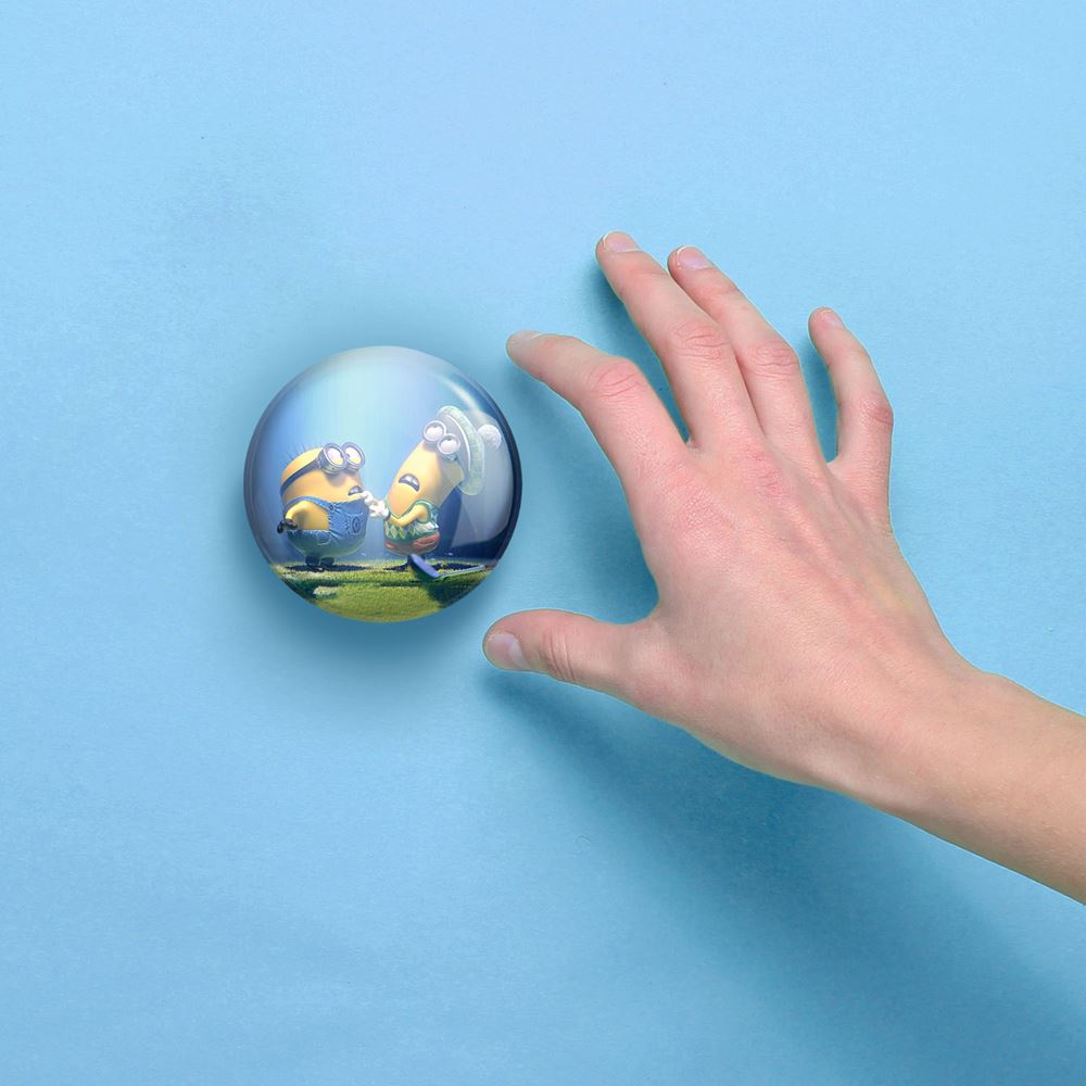 آینه های جیبی مینیون ها Minions خندالو دایره ای به قطر 7.5 سانتی متر می باشد که نه خیلی بزرگ و غیر قابل استفاده در کیف آرایشی ست و نه خیلی کوچک که تصویر خاصی در آن مشاهده نشود. سایزی استاندارد و کارآمد دارد و مناسب قرار گیری در کیف لوازم آرایش و کیف های کوچک دستی نیز هست.