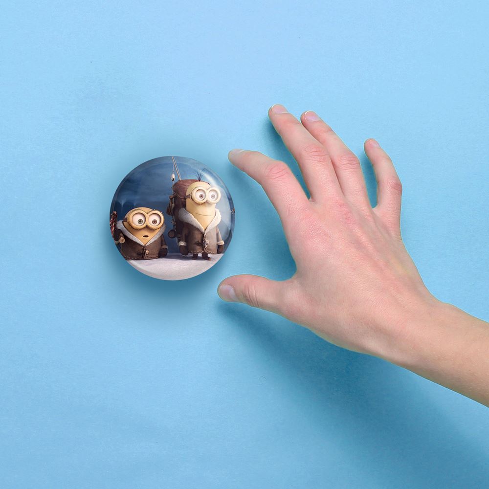 آینه های جیبی مینیون ها Minions خندالو دایره ای به قطر 7.5 سانتی متر می باشد که نه خیلی بزرگ و غیر قابل استفاده در کیف آرایشی ست و نه خیلی کوچک که تصویر خاصی در آن مشاهده نشود. سایزی استاندارد و کارآمد دارد و مناسب قرار گیری در کیف لوازم آرایش و کیف های کوچک دستی نیز هست.