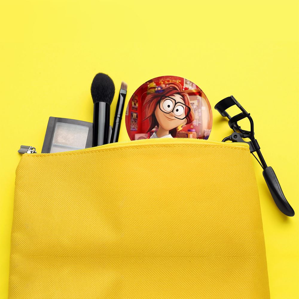 آینه های جیبی میچل ها علیه ماشین ها Mitchells vs Machines خندالو دایره ای به قطر 7.5 سانتی متر می باشد که نه خیلی بزرگ و غیر قابل استفاده در کیف آرایشی ست و نه خیلی کوچک که تصویر خاصی در آن مشاهده نشود. سایزی استاندارد و کارآمد دارد و مناسب قرار گیری در کیف لوازم آرایش و کیف های کوچک دستی نیز هست.