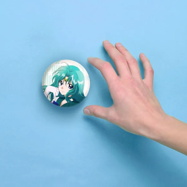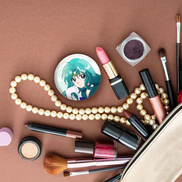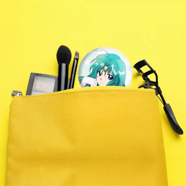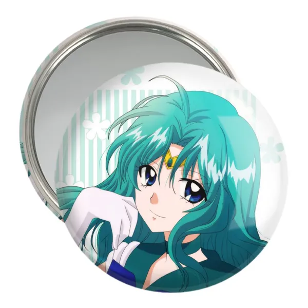 آینه های جیبی میچیرو کایو انیمه سیلور مون Sailor Moon خندالو دایره ای به قطر 7.5 سانتی متر می باشد که نه خیلی بزرگ و غیر قابل استفاده در کیف آرایشی ست و نه خیلی کوچک که تصویر خاصی در آن مشاهده نشود. سایزی استاندارد و کارآمد دارد و مناسب قرار گیری در کیف لوازم آرایش و کیف های کوچک دستی نیز هست. بدنه ی آینه جیبی میچیرو کایو انیمه سیلور مون Sailor Moon در قسمتی که آینه را در بر گرفته فلزی بوده و ظاهر براق و بسیار زیبایی دارد. چاپ طرح در پشت آینه بوسیله چاپگرهای دیجیتال شش رنگ با شفافیت و کیفیتی مثال زدنی انجام گرفته و با روکش لمینت حرارتی پوشیده شده که در مقابل آسیب و خط و خش مقاوم بوده و کیفیت بالایی دارد. آینه های جیبی میچیرو کایو انیمه سیلور مون Sailor Moon خندالو با تنوع طرحی بسیار بالا، سلیقه هر نوع مخاطبی را تامین میکند.