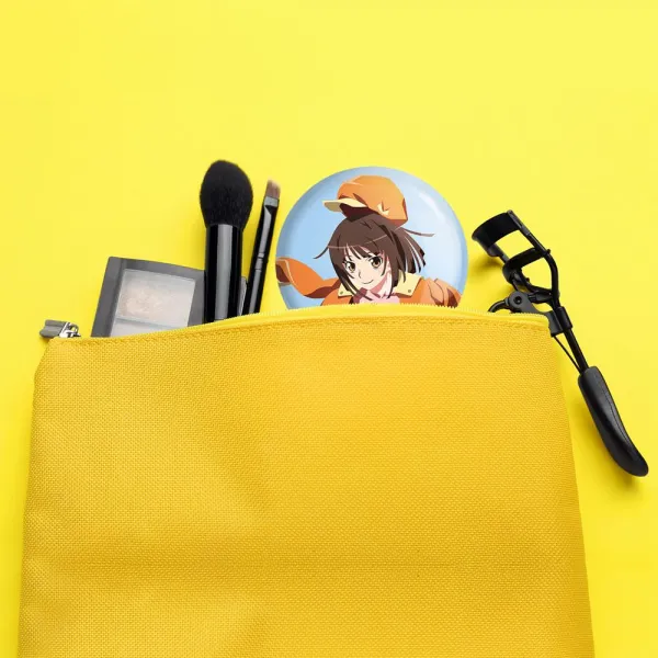آینه های جیبی نادکو سنگوکو انیمه مونوگاتاری خندالو دایره ای به قطر 7.5 سانتی متر می باشد که نه خیلی بزرگ و غیر قابل استفاده در کیف آرایشی ست و نه خیلی کوچک که تصویر خاصی در آن مشاهده نشود. سایزی استاندارد و کارآمد دارد و مناسب قرار گیری در کیف لوازم آرایش و کیف های کوچک دستی نیز هست.