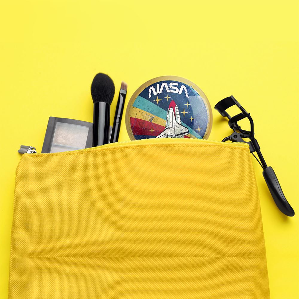 آینه های جیبی ناسا NASA خندالو دایره ای به قطر 7.5 سانتی متر می باشد که نه خیلی بزرگ و غیر قابل استفاده در کیف آرایشی ست و نه خیلی کوچک که تصویر خاصی در آن مشاهده نشود. سایزی استاندارد و کارآمد دارد و مناسب قرار گیری در کیف لوازم آرایش و کیف های کوچک دستی نیز هست. بدنه ی آینه جیبی ناسا NASA در قسمتی که آینه را در بر گرفته فلزی بوده و ظاهر براق و بسیار زیبایی دارد. چاپ طرح در پشت آینه بوسیله چاپگرهای دیجیتال شش رنگ با شفافیت و کیفیتی مثال زدنی انجام گرفته و با روکش لمینت حرارتی پوشیده شده که در مقابل آسیب و خط و خش مقاوم بوده و کیفیت بالایی دارد. آینه های جیبی ناسا NASA خندالو با تنوع طرحی بسیار بالا، سلیقه هر نوع مخاطبی را تامین میکند.