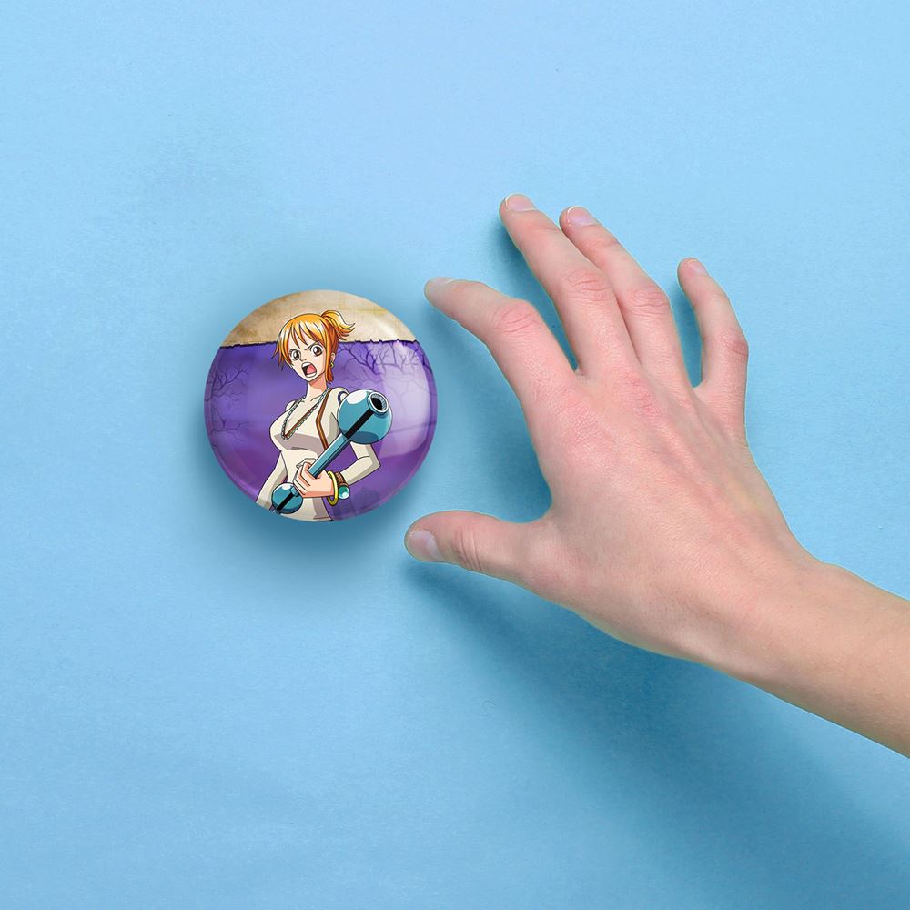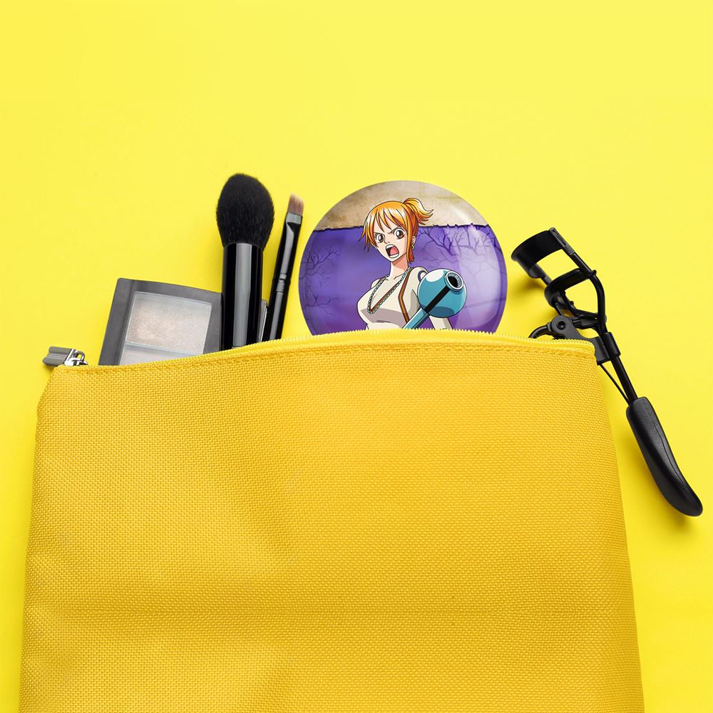 آینه های جیبی نامی انیمه وان پیس One Piece خندالو دایره ای به قطر 7.5 سانتی متر می باشد که نه خیلی بزرگ و غیر قابل استفاده در کیف آرایشی ست و نه خیلی کوچک که تصویر خاصی در آن مشاهده نشود. سایزی استاندارد و کارآمد دارد و مناسب قرار گیری در کیف لوازم آرایش و کیف های کوچک دستی نیز هست.