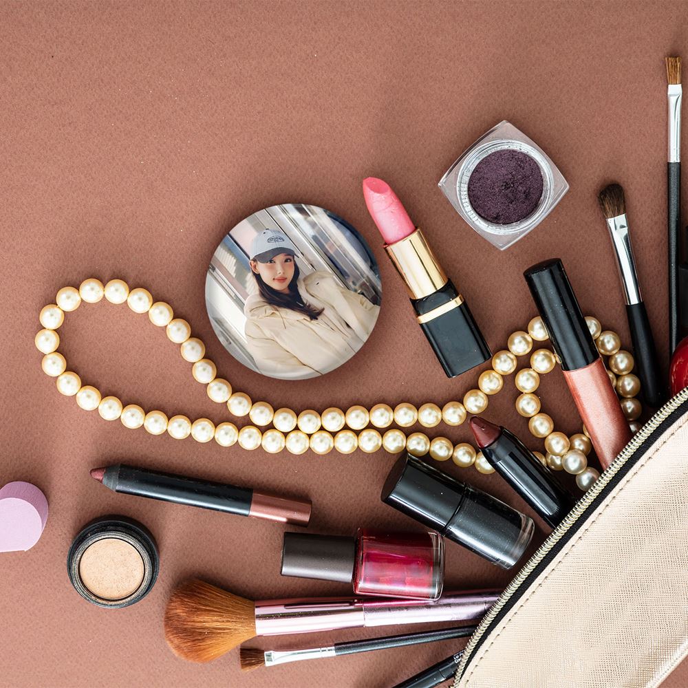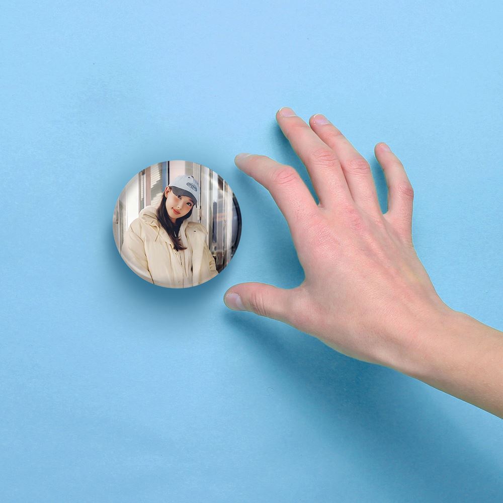آینه های جیبی نایون گروه توایس TWICE خندالو دایره ای به قطر 7.5 سانتی متر می باشد که نه خیلی بزرگ و غیر قابل استفاده در کیف آرایشی ست و نه خیلی کوچک که تصویر خاصی در آن مشاهده نشود. سایزی استاندارد و کارآمد دارد و مناسب قرار گیری در کیف لوازم آرایش و کیف های کوچک دستی نیز هست.