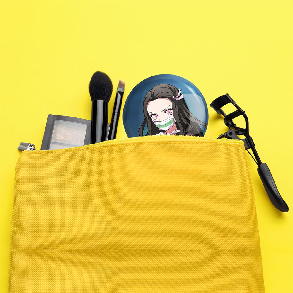 آینه های جیبی نزوکو چان انیمه دختر خندالو دایره ای به قطر 7.5 سانتی متر می باشد که نه خیلی بزرگ و غیر قابل استفاده در کیف آرایشی ست و نه خیلی کوچک که تصویر خاصی در آن مشاهده نشود. سایزی استاندارد و کارآمد دارد و مناسب قرار گیری در کیف لوازم آرایش و کیف های کوچک دستی نیز هست. بدنه ی آینه جیبی نزوکو چان انیمه دختر در قسمتی که آینه را در بر گرفته فلزی بوده و ظاهر براق و بسیار زیبایی دارد. چاپ طرح در پشت آینه بوسیله چاپگرهای دیجیتال شش رنگ با شفافیت و کیفیتی مثال زدنی انجام گرفته و با روکش لمینت حرارتی پوشیده شده که در مقابل آسیب و خط و خش مقاوم بوده و کیفیت بالایی دارد. آینه های جیبی نزوکو چان انیمه دختر خندالو با تنوع طرحی بسیار بالا، سلیقه هر نوع مخاطبی را تامین میکند.