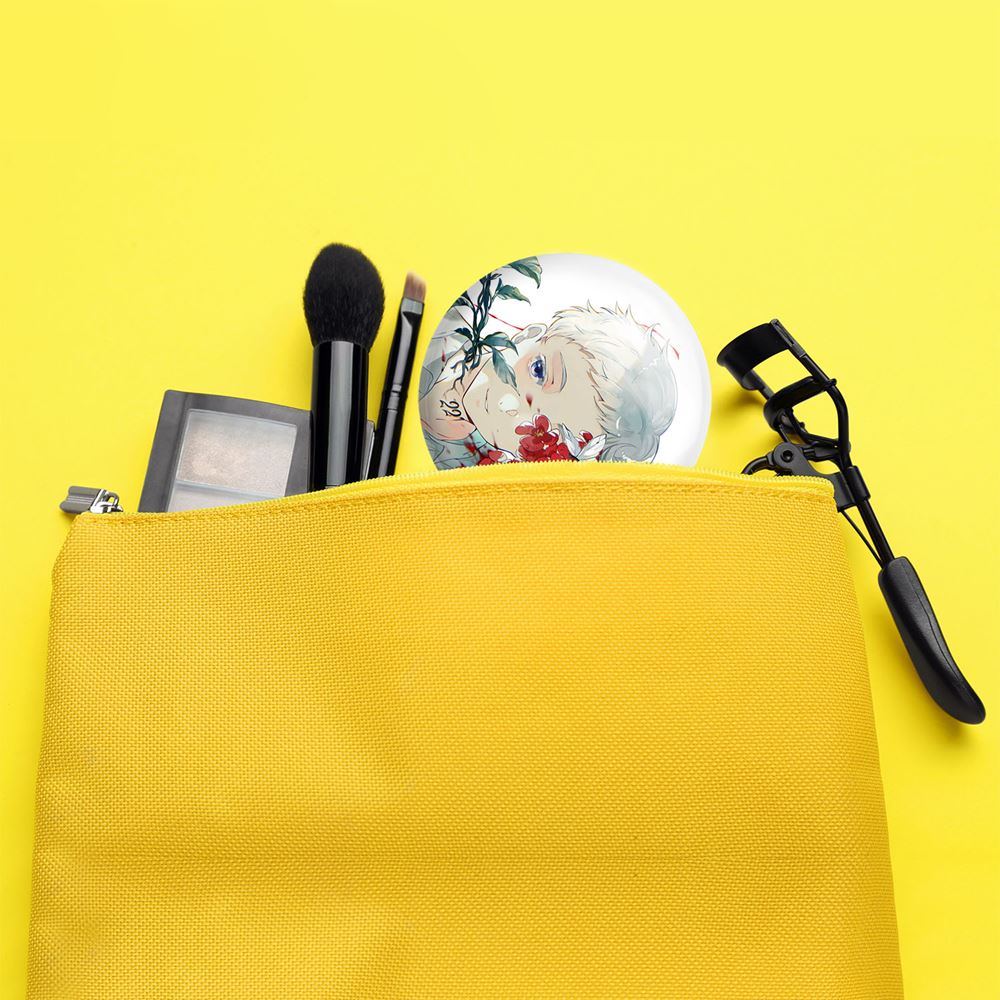 آینه های جیبی نورمن انیمه ناکجاآباد موعود خندالو دایره ای به قطر 7.5 سانتی متر می باشد که نه خیلی بزرگ و غیر قابل استفاده در کیف آرایشی ست و نه خیلی کوچک که تصویر خاصی در آن مشاهده نشود. سایزی استاندارد و کارآمد دارد و مناسب قرار گیری در کیف لوازم آرایش و کیف های کوچک دستی نیز هست.