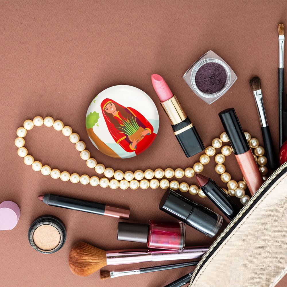 آینه های جیبی نوروز خندالو دایره ای به قطر 7.5 سانتی متر می باشد که نه خیلی بزرگ و غیر قابل استفاده در کیف آرایشی ست و نه خیلی کوچک که تصویر خاصی در آن مشاهده نشود. سایزی استاندارد و کارآمد دارد و مناسب قرار گیری در کیف لوازم آرایش و کیف های کوچک دستی نیز هست.