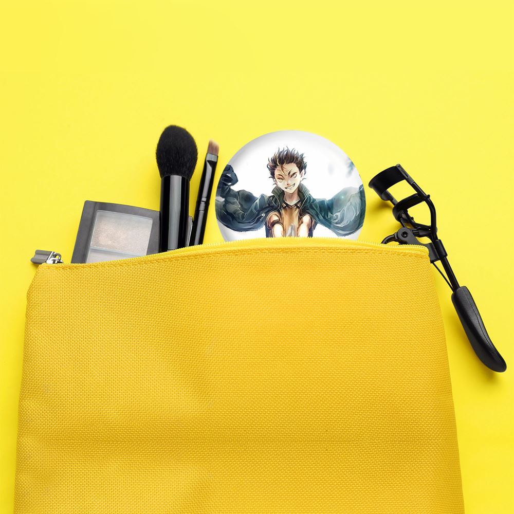 آینه های جیبی نیشینویا یو انیمه آبشار سرنوشت هایکیو کاگیاما خندالو دایره ای به قطر 7.5 سانتی متر می باشد که نه خیلی بزرگ و غیر قابل استفاده در کیف آرایشی ست و نه خیلی کوچک که تصویر خاصی در آن مشاهده نشود. سایزی استاندارد و کارآمد دارد و مناسب قرار گیری در کیف لوازم آرایش و کیف های کوچک دستی نیز هست.