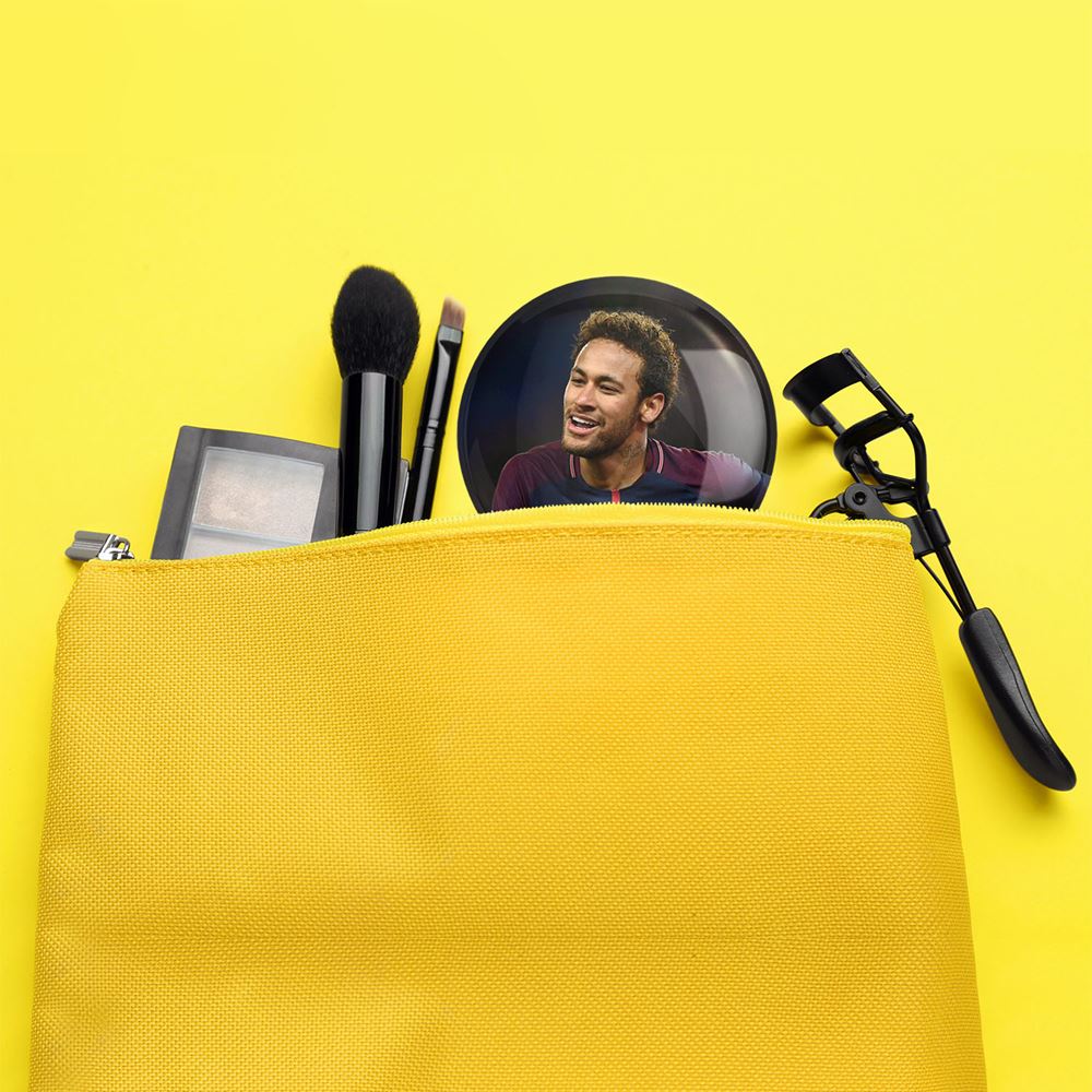 آینه های جیبی نیمار Neymar خندالو دایره ای به قطر 7.5 سانتی متر می باشد که نه خیلی بزرگ و غیر قابل استفاده در کیف آرایشی ست و نه خیلی کوچک که تصویر خاصی در آن مشاهده نشود. سایزی استاندارد و کارآمد دارد و مناسب قرار گیری در کیف لوازم آرایش و کیف های کوچک دستی نیز هست.