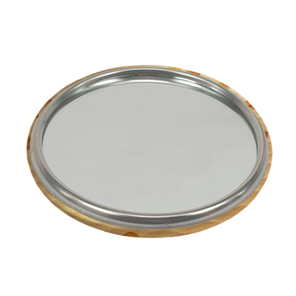 آینه های جیبی نیمه شعبان خندالو دایره ای به قطر 7.5 سانتی متر می باشد که نه خیلی بزرگ و غیر قابل استفاده در کیف آرایشی ست و نه خیلی کوچک که تصویر خاصی در آن مشاهده نشود. سایزی استاندارد و کارآمد دارد و مناسب قرار گیری در کیف لوازم آرایش و کیف های کوچک دستی نیز هست.
