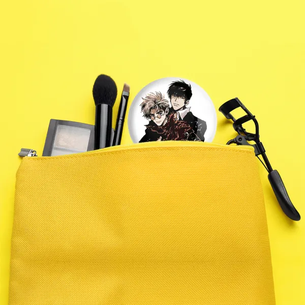 آینه های جیبی نیکولاس و وش انیمه تریگان (Trigun) خندالو دایره ای به قطر 7.5 سانتی متر می باشد که نه خیلی بزرگ و غیر قابل استفاده در کیف آرایشی ست و نه خیلی کوچک که تصویر خاصی در آن مشاهده نشود. سایزی استاندارد و کارآمد دارد و مناسب قرار گیری در کیف لوازم آرایش و کیف های کوچک دستی نیز هست.