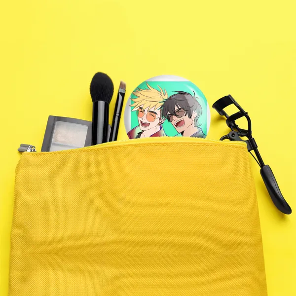 آینه های جیبی نیکولاس و وش انیمه تریگان (Trigun) خندالو دایره ای به قطر 7.5 سانتی متر می باشد که نه خیلی بزرگ و غیر قابل استفاده در کیف آرایشی ست و نه خیلی کوچک که تصویر خاصی در آن مشاهده نشود. سایزی استاندارد و کارآمد دارد و مناسب قرار گیری در کیف لوازم آرایش و کیف های کوچک دستی نیز هست.