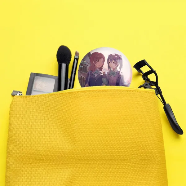 آینه های جیبی نیکو و ماکی انیمه لاو لایو Love Live خندالو دایره ای به قطر 7.5 سانتی متر می باشد که نه خیلی بزرگ و غیر قابل استفاده در کیف آرایشی ست و نه خیلی کوچک که تصویر خاصی در آن مشاهده نشود. سایزی استاندارد و کارآمد دارد و مناسب قرار گیری در کیف لوازم آرایش و کیف های کوچک دستی نیز هست.