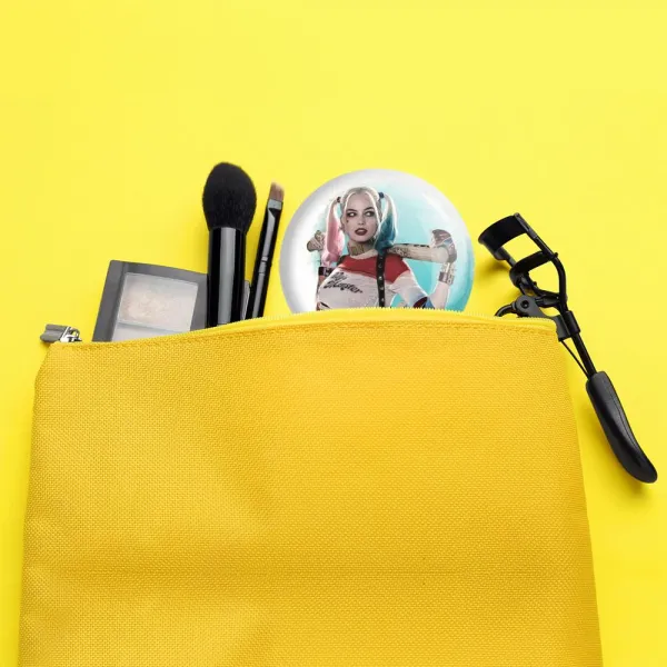 آینه های جیبی هارلی کویین خندالو دایره ای به قطر 7.5 سانتی متر می باشد که نه خیلی بزرگ و غیر قابل استفاده در کیف آرایشی ست و نه خیلی کوچک که تصویر خاصی در آن مشاهده نشود. سایزی استاندارد و کارآمد دارد و مناسب قرار گیری در کیف لوازم آرایش و کیف های کوچک دستی نیز هست. بدنه ی آینه جیبی هارلی کویین در قسمتی که آینه را در بر گرفته فلزی بوده و ظاهر براق و بسیار زیبایی دارد. چاپ طرح در پشت آینه بوسیله چاپگرهای دیجیتال شش رنگ با شفافیت و کیفیتی مثال زدنی انجام گرفته و با روکش لمینت حرارتی پوشیده شده که در مقابل آسیب و خط و خش مقاوم بوده و کیفیت بالایی دارد. آینه های جیبی هارلی کویین خندالو با تنوع طرحی بسیار بالا، سلیقه هر نوع مخاطبی را تامین میکند.