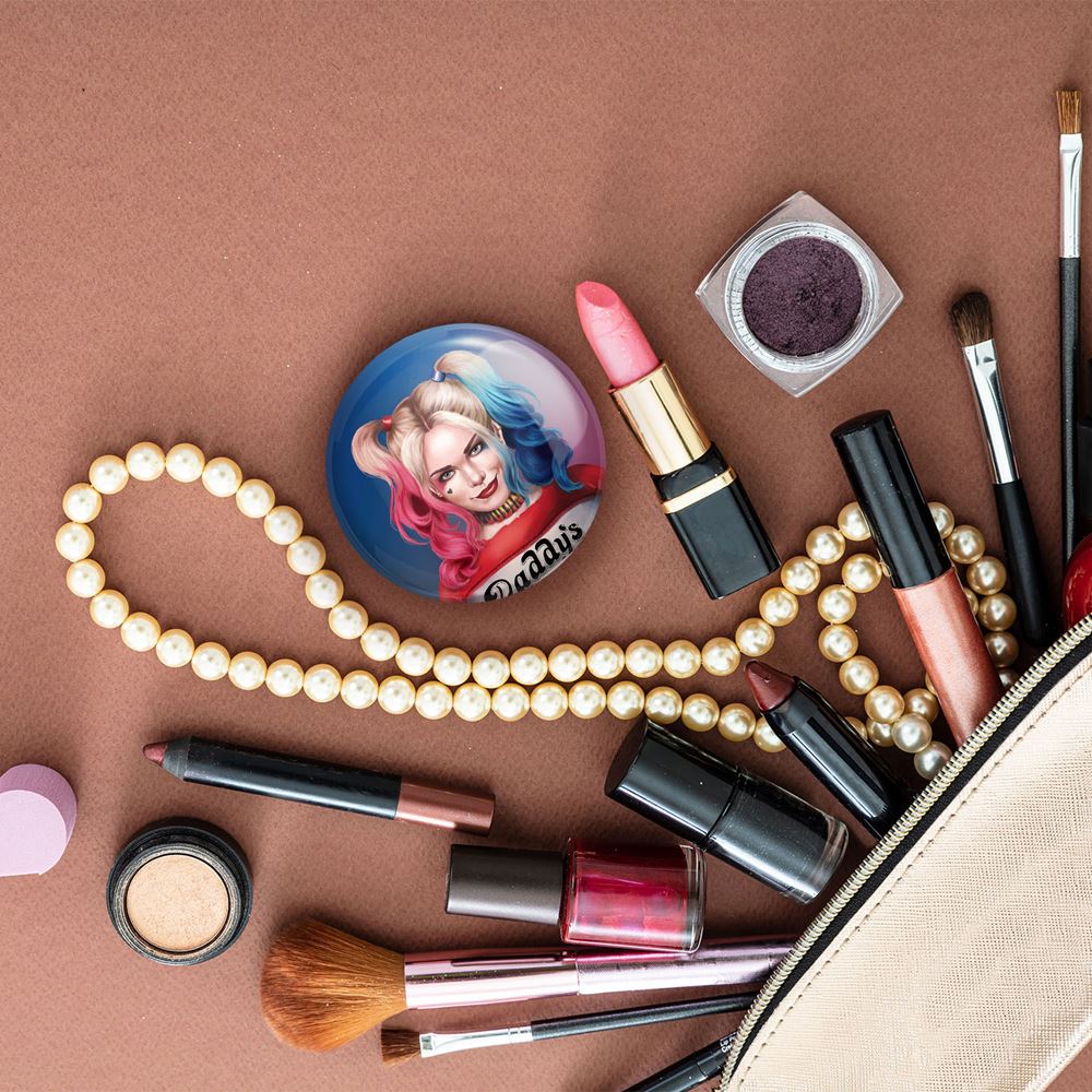 آینه های جیبی هارلی کویین Harley Quinn خندالو دایره ای به قطر 7.5 سانتی متر می باشد که نه خیلی بزرگ و غیر قابل استفاده در کیف آرایشی ست و نه خیلی کوچک که تصویر خاصی در آن مشاهده نشود. سایزی استاندارد و کارآمد دارد و مناسب قرار گیری در کیف لوازم آرایش و کیف های کوچک دستی نیز هست.