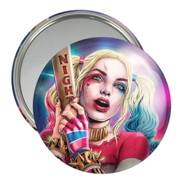 آینه های جیبی هارلی کویین Harley Quinn خندالو دایره ای به قطر 7.5 سانتی متر می باشد که نه خیلی بزرگ و غیر قابل استفاده در کیف آرایشی ست و نه خیلی کوچک که تصویر خاصی در آن مشاهده نشود. سایزی استاندارد و کارآمد دارد و مناسب قرار گیری در کیف لوازم آرایش و کیف های کوچک دستی نیز هست.