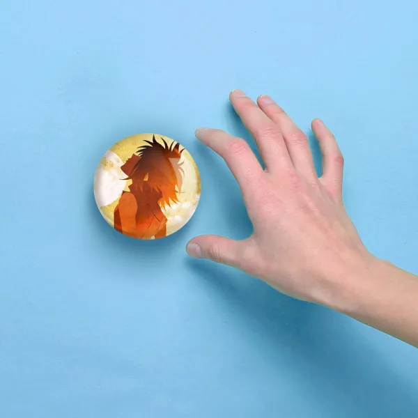 آینه های جیبی هاروکو انیمه فولی کولی Fooly Cooly خندالو دایره ای به قطر 7.5 سانتی متر می باشد که نه خیلی بزرگ و غیر قابل استفاده در کیف آرایشی ست و نه خیلی کوچک که تصویر خاصی در آن مشاهده نشود. سایزی استاندارد و کارآمد دارد و مناسب قرار گیری در کیف لوازم آرایش و کیف های کوچک دستی نیز هست.