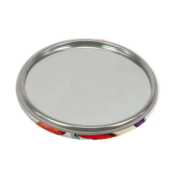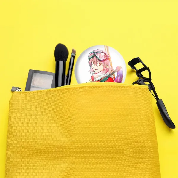 آینه های جیبی هاروکو انیمه فولی کولی Fooly Cooly خندالو دایره ای به قطر 7.5 سانتی متر می باشد که نه خیلی بزرگ و غیر قابل استفاده در کیف آرایشی ست و نه خیلی کوچک که تصویر خاصی در آن مشاهده نشود. سایزی استاندارد و کارآمد دارد و مناسب قرار گیری در کیف لوازم آرایش و کیف های کوچک دستی نیز هست.