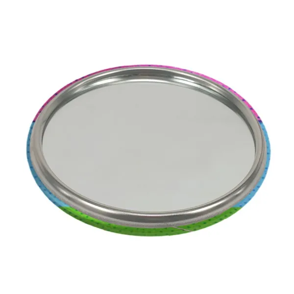 آینه های جیبی هاروکو انیمه فولی کولی Fooly Cooly خندالو دایره ای به قطر 7.5 سانتی متر می باشد که نه خیلی بزرگ و غیر قابل استفاده در کیف آرایشی ست و نه خیلی کوچک که تصویر خاصی در آن مشاهده نشود. سایزی استاندارد و کارآمد دارد و مناسب قرار گیری در کیف لوازم آرایش و کیف های کوچک دستی نیز هست.
