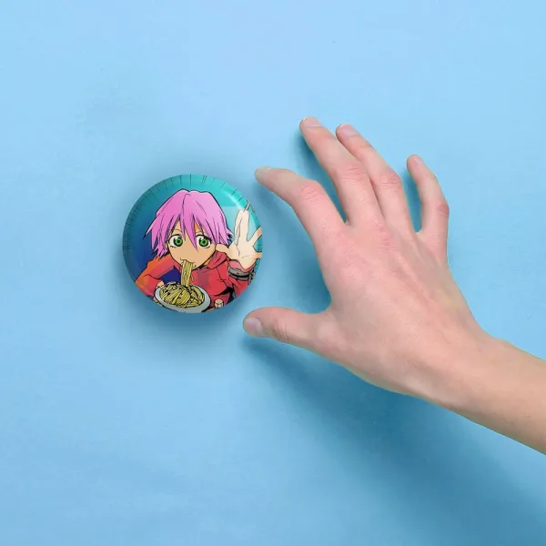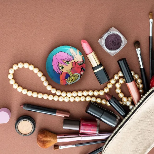 آینه های جیبی هاروکو انیمه فولی کولی Fooly Cooly خندالو دایره ای به قطر 7.5 سانتی متر می باشد که نه خیلی بزرگ و غیر قابل استفاده در کیف آرایشی ست و نه خیلی کوچک که تصویر خاصی در آن مشاهده نشود. سایزی استاندارد و کارآمد دارد و مناسب قرار گیری در کیف لوازم آرایش و کیف های کوچک دستی نیز هست.