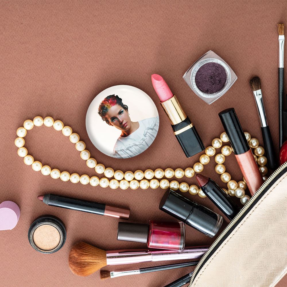 آینه های جیبی هالزی Halsey خندالو دایره ای به قطر 7.5 سانتی متر می باشد که نه خیلی بزرگ و غیر قابل استفاده در کیف آرایشی ست و نه خیلی کوچک که تصویر خاصی در آن مشاهده نشود. سایزی استاندارد و کارآمد دارد و مناسب قرار گیری در کیف لوازم آرایش و کیف های کوچک دستی نیز هست.