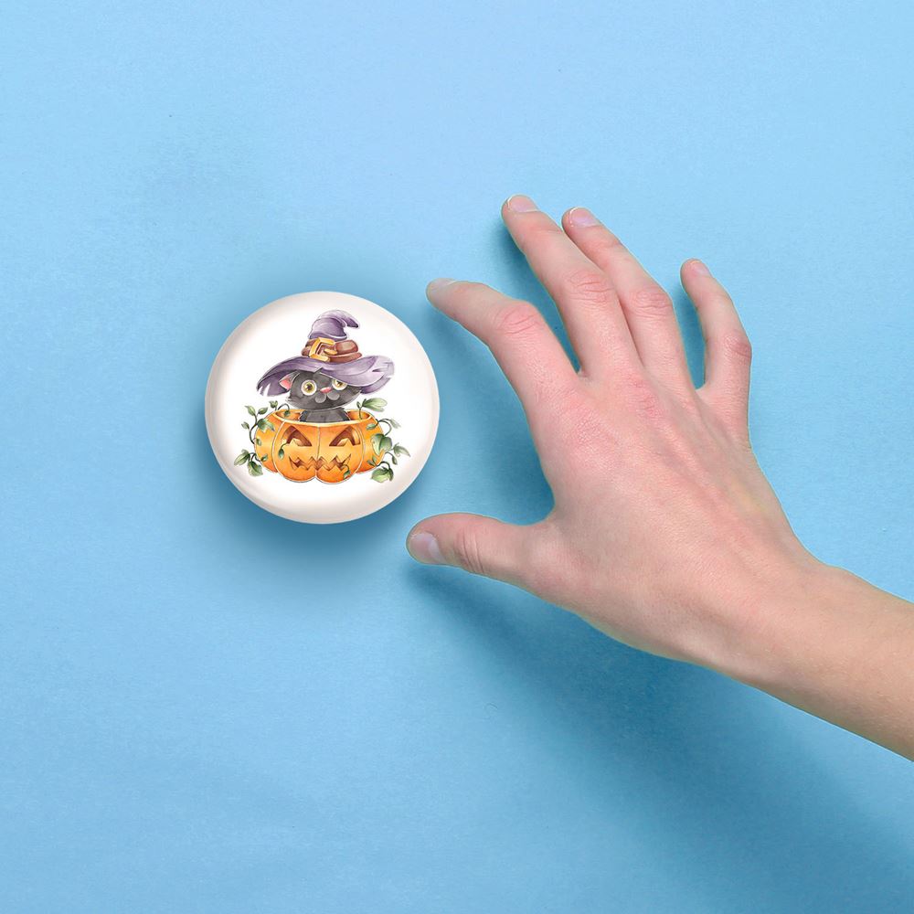 آینه های جیبی هالووین خندالو دایره ای به قطر 7.5 سانتی متر می باشد که نه خیلی بزرگ و غیر قابل استفاده در کیف آرایشی ست و نه خیلی کوچک که تصویر خاصی در آن مشاهده نشود. سایزی استاندارد و کارآمد دارد و مناسب قرار گیری در کیف لوازم آرایش و کیف های کوچک دستی نیز هست.