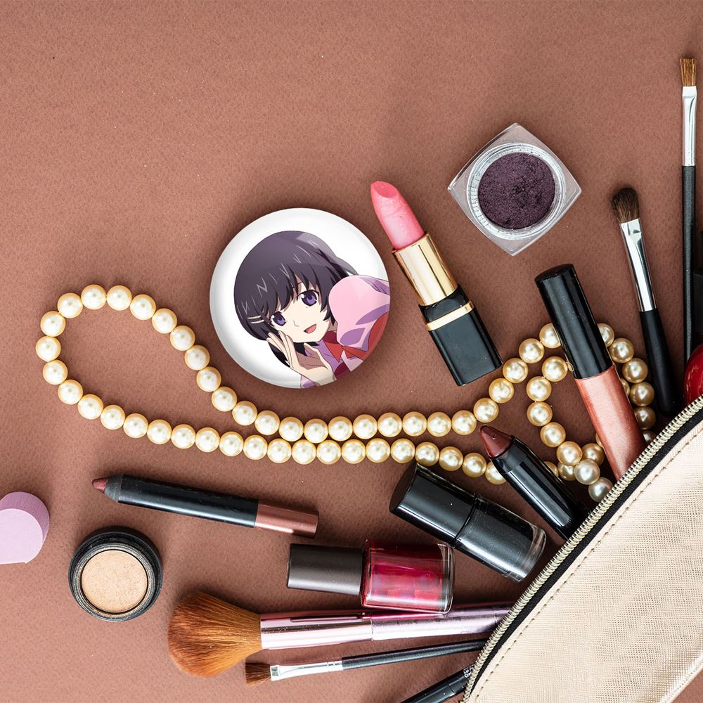 آینه های جیبی هانئکاوا انیمه مونوگاتاری خندالو دایره ای به قطر 7.5 سانتی متر می باشد که نه خیلی بزرگ و غیر قابل استفاده در کیف آرایشی ست و نه خیلی کوچک که تصویر خاصی در آن مشاهده نشود. سایزی استاندارد و کارآمد دارد و مناسب قرار گیری در کیف لوازم آرایش و کیف های کوچک دستی نیز هست. بدنه ی آینه جیبی هانئکاوا انیمه مونوگاتاری در قسمتی که آینه را در بر گرفته فلزی بوده و ظاهر براق و بسیار زیبایی دارد. چاپ طرح در پشت آینه بوسیله چاپگرهای دیجیتال شش رنگ با شفافیت و کیفیتی مثال زدنی انجام گرفته و با روکش لمینت حرارتی پوشیده شده که در مقابل آسیب و خط و خش مقاوم بوده و کیفیت بالایی دارد. آینه های جیبی هانئکاوا انیمه مونوگاتاری خندالو با تنوع طرحی بسیار بالا، سلیقه هر نوع مخاطبی را تامین میکند.