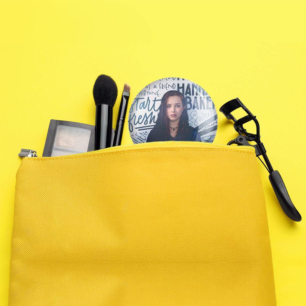 آینه های جیبی هانا بیکر 13دلیل برای اینکه Reasons Why13 خندالو دایره ای به قطر 7.5 سانتی متر می باشد که نه خیلی بزرگ و غیر قابل استفاده در کیف آرایشی ست و نه خیلی کوچک که تصویر خاصی در آن مشاهده نشود. سایزی استاندارد و کارآمد دارد و مناسب قرار گیری در کیف لوازم آرایش و کیف های کوچک دستی نیز هست. بدنه ی آینه جیبی هانا بیکر 13دلیل برای اینکه Reasons Why13 در قسمتی که آینه را در بر گرفته فلزی بوده و ظاهر براق و بسیار زیبایی دارد. چاپ طرح در پشت آینه بوسیله چاپگرهای دیجیتال شش رنگ با شفافیت و کیفیتی مثال زدنی انجام گرفته و با روکش لمینت حرارتی پوشیده شده که در مقابل آسیب و خط و خش مقاوم بوده و کیفیت بالایی دارد. آینه های جیبی هانا بیکر 13دلیل برای اینکه Reasons Why13 خندالو با تنوع طرحی بسیار بالا، سلیقه هر نوع مخاطبی را تامین میکند.