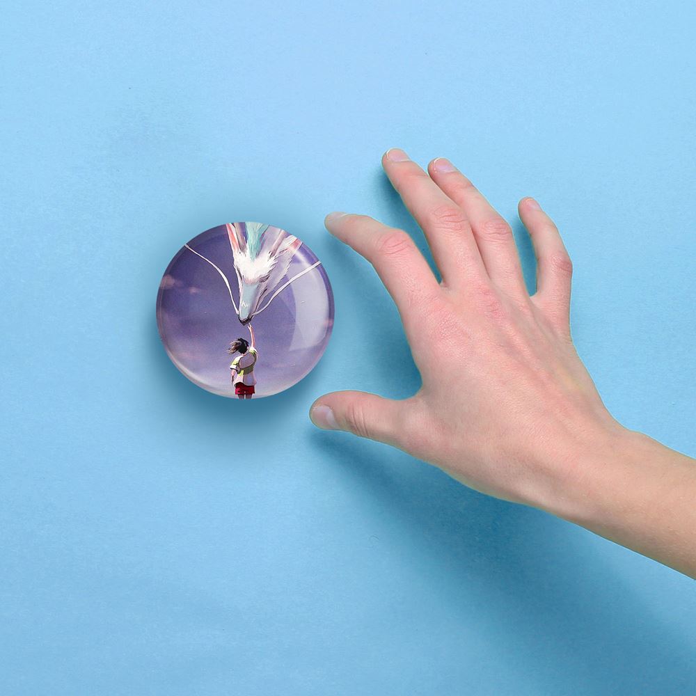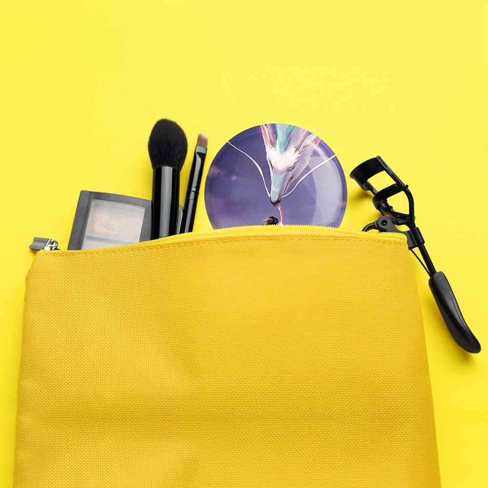 آینه های جیبی هاکو و چیهیرو انیمه شهر اشباح Spirited Away خندالو دایره ای به قطر 7.5 سانتی متر می باشد که نه خیلی بزرگ و غیر قابل استفاده در کیف آرایشی ست و نه خیلی کوچک که تصویر خاصی در آن مشاهده نشود. سایزی استاندارد و کارآمد دارد و مناسب قرار گیری در کیف لوازم آرایش و کیف های کوچک دستی نیز هست.