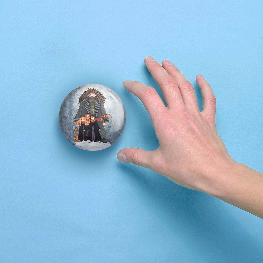 آینه های جیبی هاگرید هری پاتر خندالو دایره ای به قطر 7.5 سانتی متر می باشد که نه خیلی بزرگ و غیر قابل استفاده در کیف آرایشی ست و نه خیلی کوچک که تصویر خاصی در آن مشاهده نشود. سایزی استاندارد و کارآمد دارد و مناسب قرار گیری در کیف لوازم آرایش و کیف های کوچک دستی نیز هست. بدنه ی آینه جیبی هاگرید هری پاتر در قسمتی که آینه را در بر گرفته فلزی بوده و ظاهر براق و بسیار زیبایی دارد. چاپ طرح در پشت آینه بوسیله چاپگرهای دیجیتال شش رنگ با شفافیت و کیفیتی مثال زدنی انجام گرفته و با روکش لمینت حرارتی پوشیده شده که در مقابل آسیب و خط و خش مقاوم بوده و کیفیت بالایی دارد. آینه های جیبی هاگرید هری پاتر خندالو با تنوع طرحی بسیار بالا، سلیقه هر نوع مخاطبی را تامین میکند.