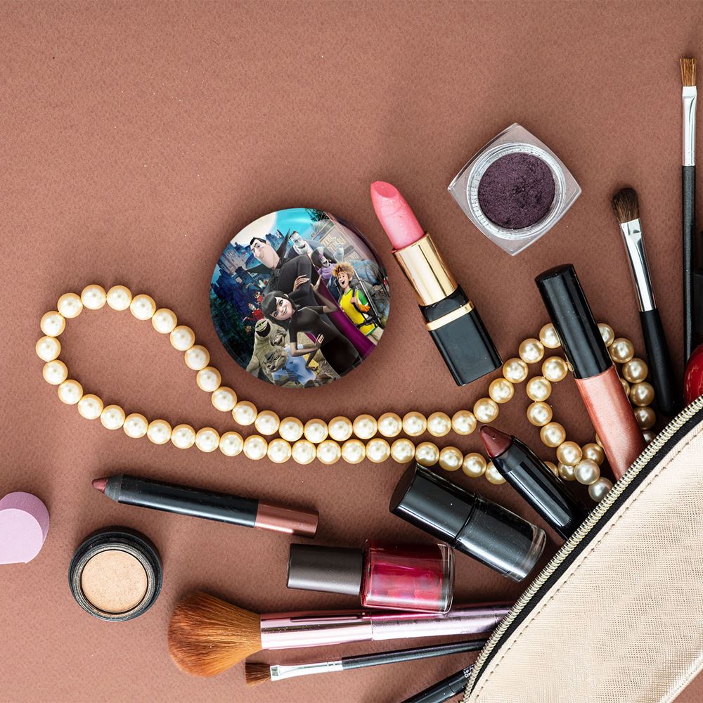 آینه های جیبی هتل ترانسیلوانیا Hotel Transylvania خندالو دایره ای به قطر 7.5 سانتی متر می باشد که نه خیلی بزرگ و غیر قابل استفاده در کیف آرایشی ست و نه خیلی کوچک که تصویر خاصی در آن مشاهده نشود. سایزی استاندارد و کارآمد دارد و مناسب قرار گیری در کیف لوازم آرایش و کیف های کوچک دستی نیز هست.