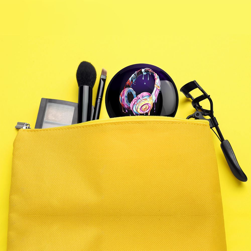 آینه های جیبی هدفون خندالو دایره ای به قطر 7.5 سانتی متر می باشد که نه خیلی بزرگ و غیر قابل استفاده در کیف آرایشی ست و نه خیلی کوچک که تصویر خاصی در آن مشاهده نشود. سایزی استاندارد و کارآمد دارد و مناسب قرار گیری در کیف لوازم آرایش و کیف های کوچک دستی نیز هست. بدنه ی آینه جیبی هدفون در قسمتی که آینه را در بر گرفته فلزی بوده و ظاهر براق و بسیار زیبایی دارد. چاپ طرح در پشت آینه بوسیله چاپگرهای دیجیتال شش رنگ با شفافیت و کیفیتی مثال زدنی انجام گرفته و با روکش لمینت حرارتی پوشیده شده که در مقابل آسیب و خط و خش مقاوم بوده و کیفیت بالایی دارد. آینه های جیبی هدفون خندالو با تنوع طرحی بسیار بالا، سلیقه هر نوع مخاطبی را تامین میکند.
