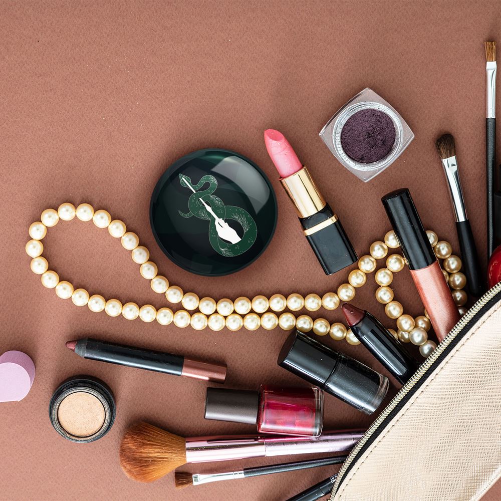 آینه های جیبی هری پاتر خانه اسلیترین خندالو دایره ای به قطر 7.5 سانتی متر می باشد که نه خیلی بزرگ و غیر قابل استفاده در کیف آرایشی ست و نه خیلی کوچک که تصویر خاصی در آن مشاهده نشود. سایزی استاندارد و کارآمد دارد و مناسب قرار گیری در کیف لوازم آرایش و کیف های کوچک دستی نیز هست. بدنه ی آینه جیبی هری پاتر خانه اسلیترین در قسمتی که آینه را در بر گرفته فلزی بوده و ظاهر براق و بسیار زیبایی دارد. چاپ طرح در پشت آینه بوسیله چاپگرهای دیجیتال شش رنگ با شفافیت و کیفیتی مثال زدنی انجام گرفته و با روکش لمینت حرارتی پوشیده شده که در مقابل آسیب و خط و خش مقاوم بوده و کیفیت بالایی دارد. آینه های جیبی هری پاتر خانه اسلیترین خندالو با تنوع طرحی بسیار بالا، سلیقه هر نوع مخاطبی را تامین میکند.