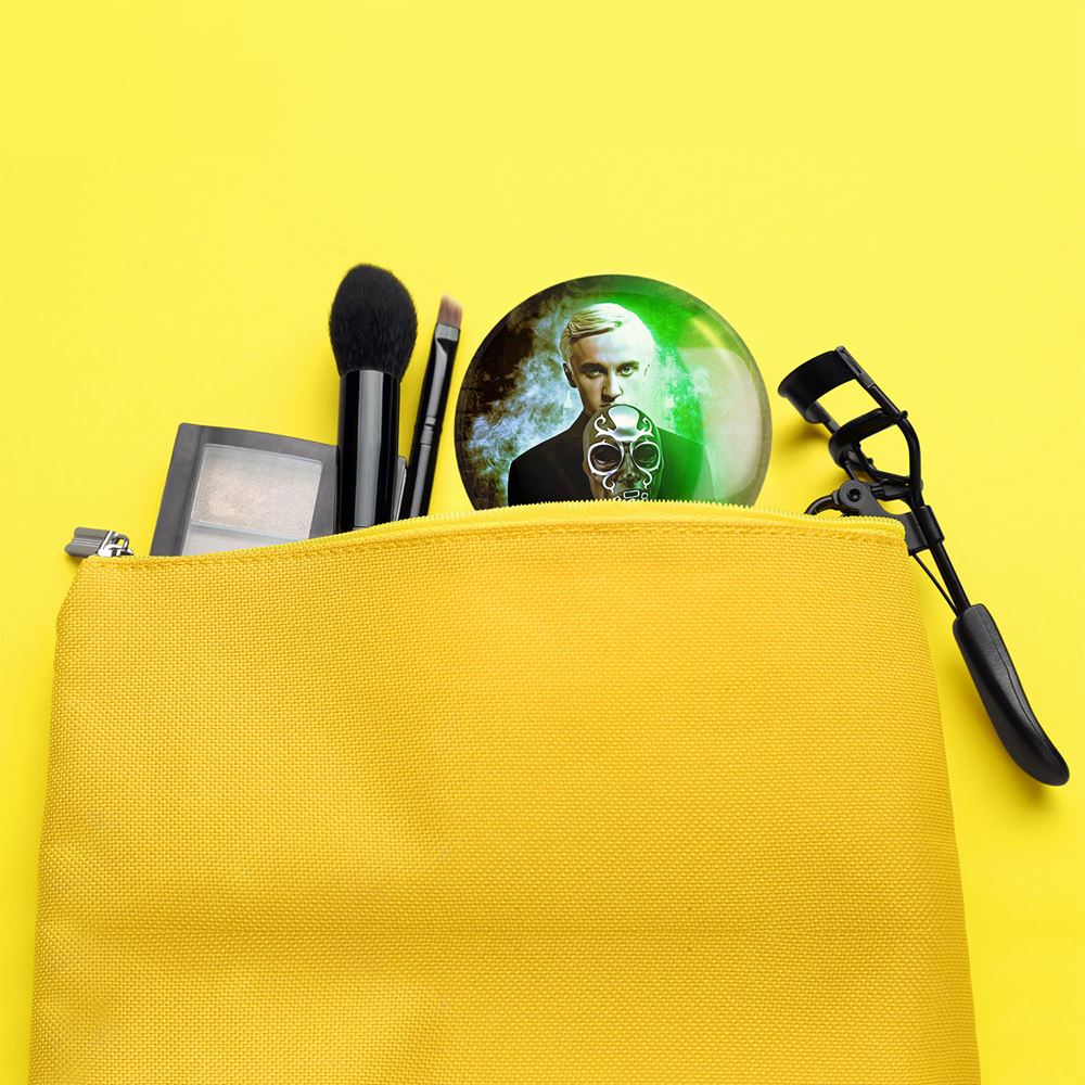 آینه های جیبی هری پاتر دراکو مالفوی خندالو دایره ای به قطر 7.5 سانتی متر می باشد که نه خیلی بزرگ و غیر قابل استفاده در کیف آرایشی ست و نه خیلی کوچک که تصویر خاصی در آن مشاهده نشود. سایزی استاندارد و کارآمد دارد و مناسب قرار گیری در کیف لوازم آرایش و کیف های کوچک دستی نیز هست.