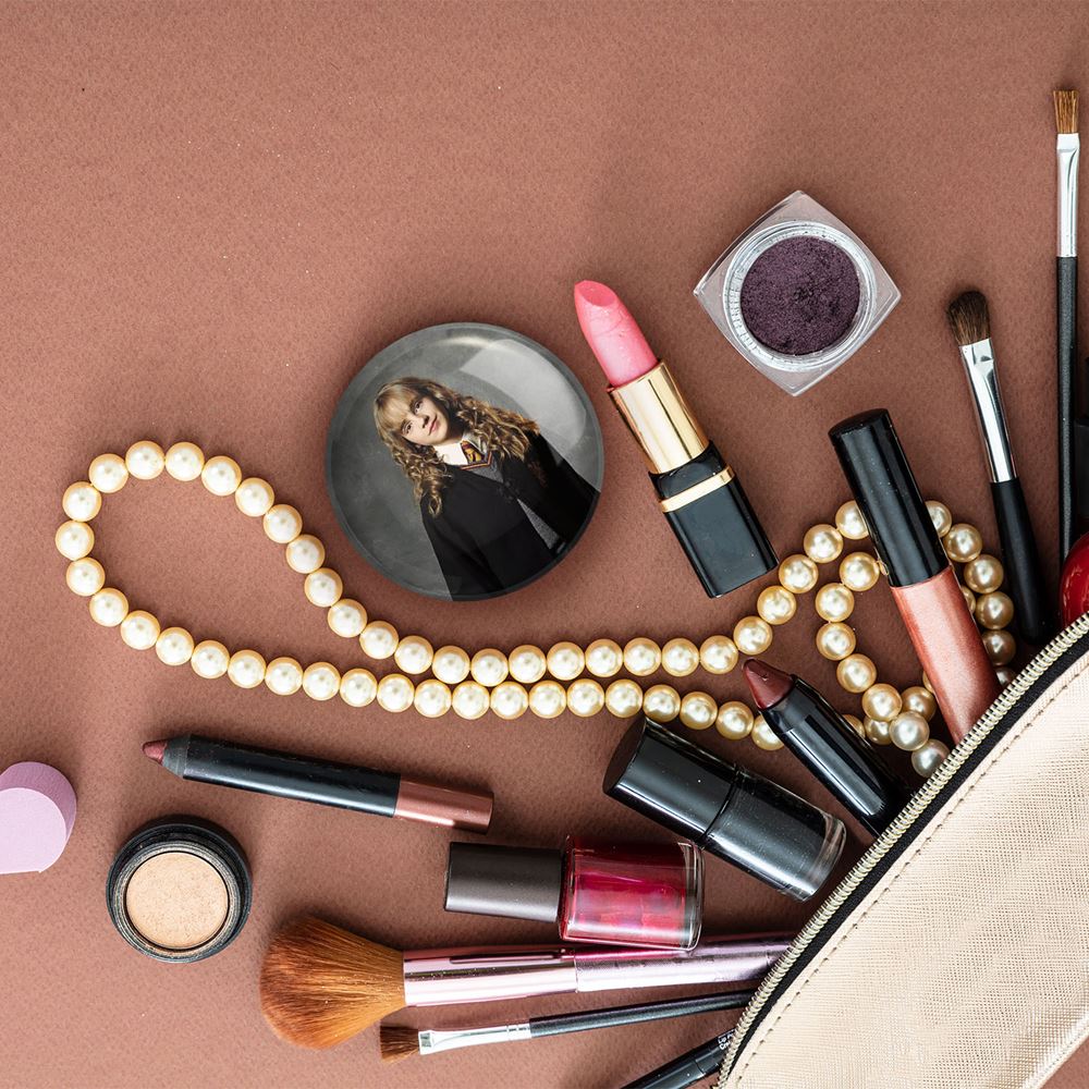 آینه های جیبی هری پاتر هرمیون گرانجر خندالو دایره ای به قطر 7.5 سانتی متر می باشد که نه خیلی بزرگ و غیر قابل استفاده در کیف آرایشی ست و نه خیلی کوچک که تصویر خاصی در آن مشاهده نشود. سایزی استاندارد و کارآمد دارد و مناسب قرار گیری در کیف لوازم آرایش و کیف های کوچک دستی نیز هست.