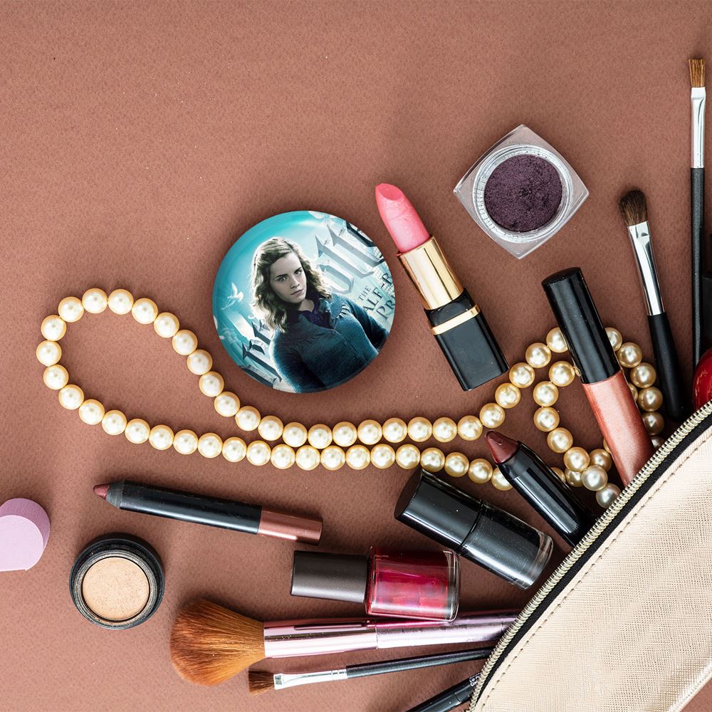 آینه های جیبی هری پاتر هرمیون گرانجر خندالو دایره ای به قطر 7.5 سانتی متر می باشد که نه خیلی بزرگ و غیر قابل استفاده در کیف آرایشی ست و نه خیلی کوچک که تصویر خاصی در آن مشاهده نشود. سایزی استاندارد و کارآمد دارد و مناسب قرار گیری در کیف لوازم آرایش و کیف های کوچک دستی نیز هست.