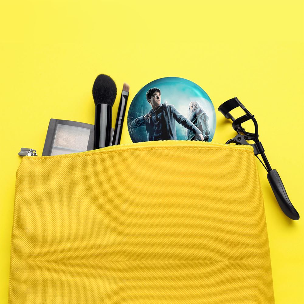 آینه های جیبی هری پاتر و دامبلدور خندالو دایره ای به قطر 7.5 سانتی متر می باشد که نه خیلی بزرگ و غیر قابل استفاده در کیف آرایشی ست و نه خیلی کوچک که تصویر خاصی در آن مشاهده نشود. سایزی استاندارد و کارآمد دارد و مناسب قرار گیری در کیف لوازم آرایش و کیف های کوچک دستی نیز هست. بدنه ی آینه جیبی هری پاتر و دامبلدور در قسمتی که آینه را در بر گرفته فلزی بوده و ظاهر براق و بسیار زیبایی دارد. چاپ طرح در پشت آینه بوسیله چاپگرهای دیجیتال شش رنگ با شفافیت و کیفیتی مثال زدنی انجام گرفته و با روکش لمینت حرارتی پوشیده شده که در مقابل آسیب و خط و خش مقاوم بوده و کیفیت بالایی دارد. آینه های جیبی هری پاتر و دامبلدور خندالو با تنوع طرحی بسیار بالا، سلیقه هر نوع مخاطبی را تامین میکند.