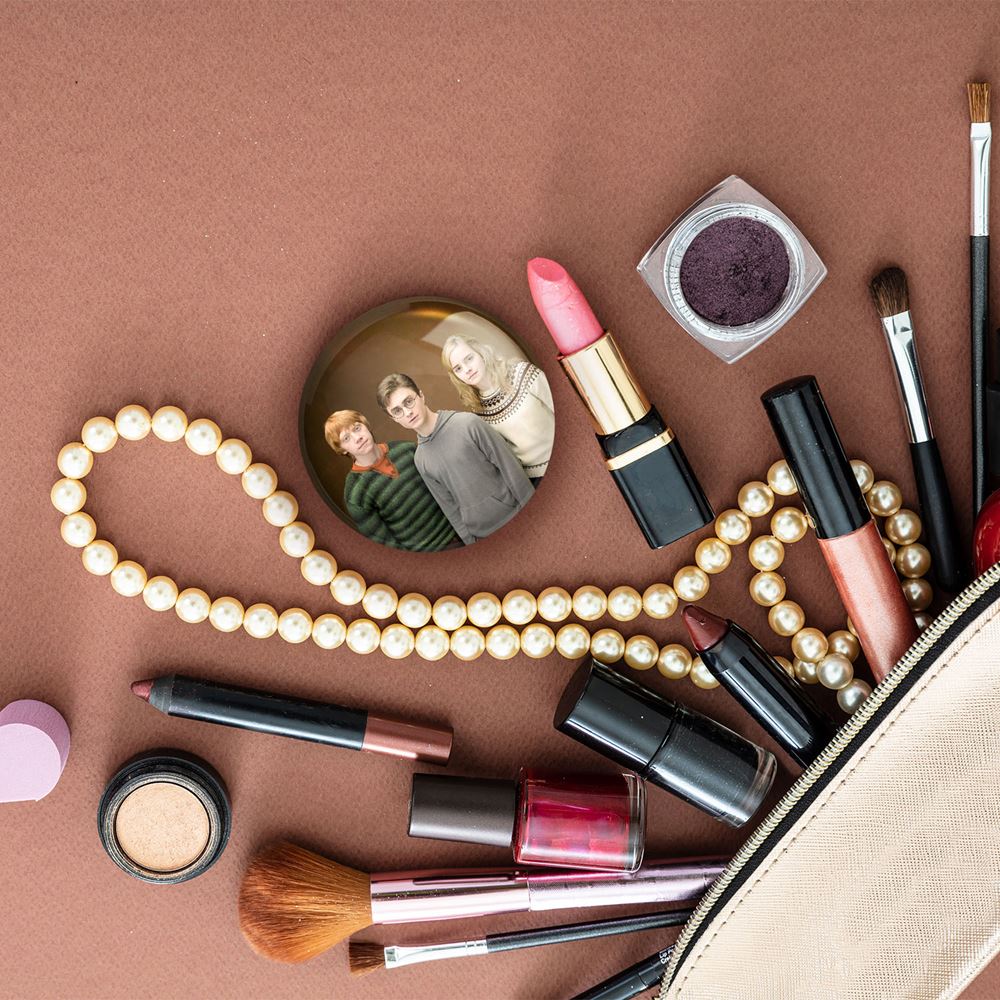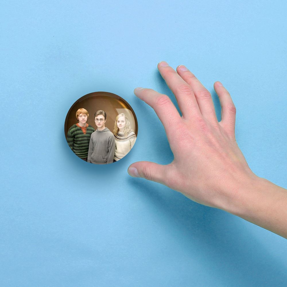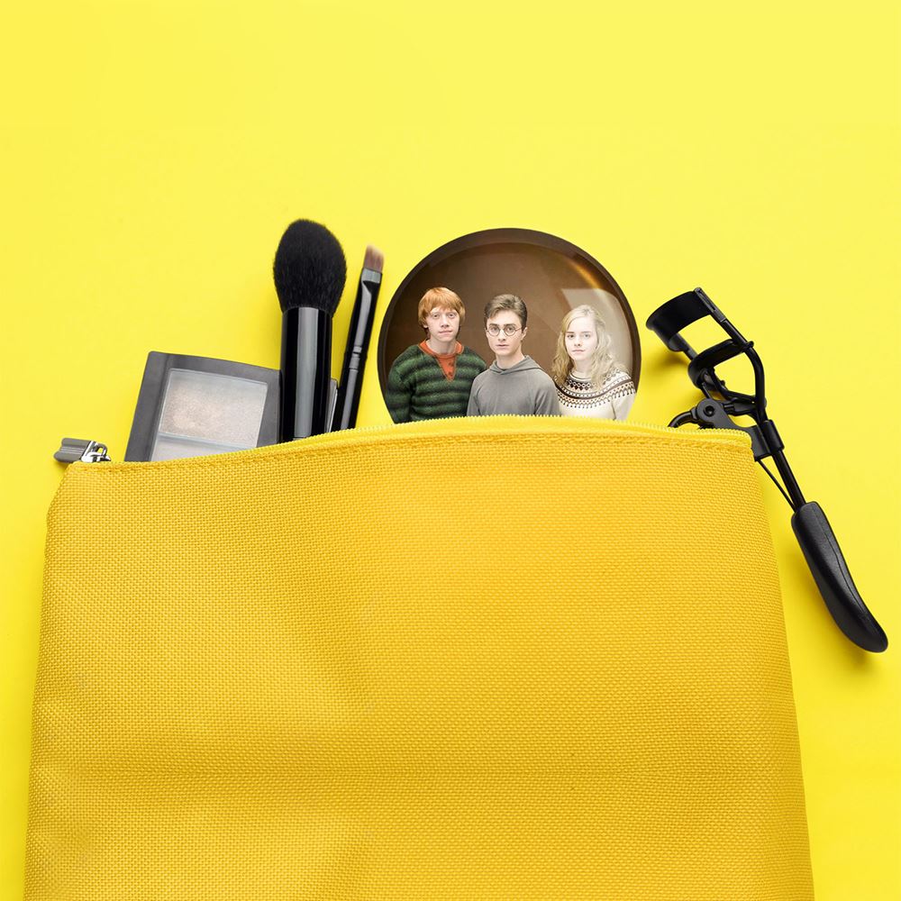 آینه های جیبی هری پاتر و هرمیون و رون خندالو دایره ای به قطر 7.5 سانتی متر می باشد که نه خیلی بزرگ و غیر قابل استفاده در کیف آرایشی ست و نه خیلی کوچک که تصویر خاصی در آن مشاهده نشود. سایزی استاندارد و کارآمد دارد و مناسب قرار گیری در کیف لوازم آرایش و کیف های کوچک دستی نیز هست.