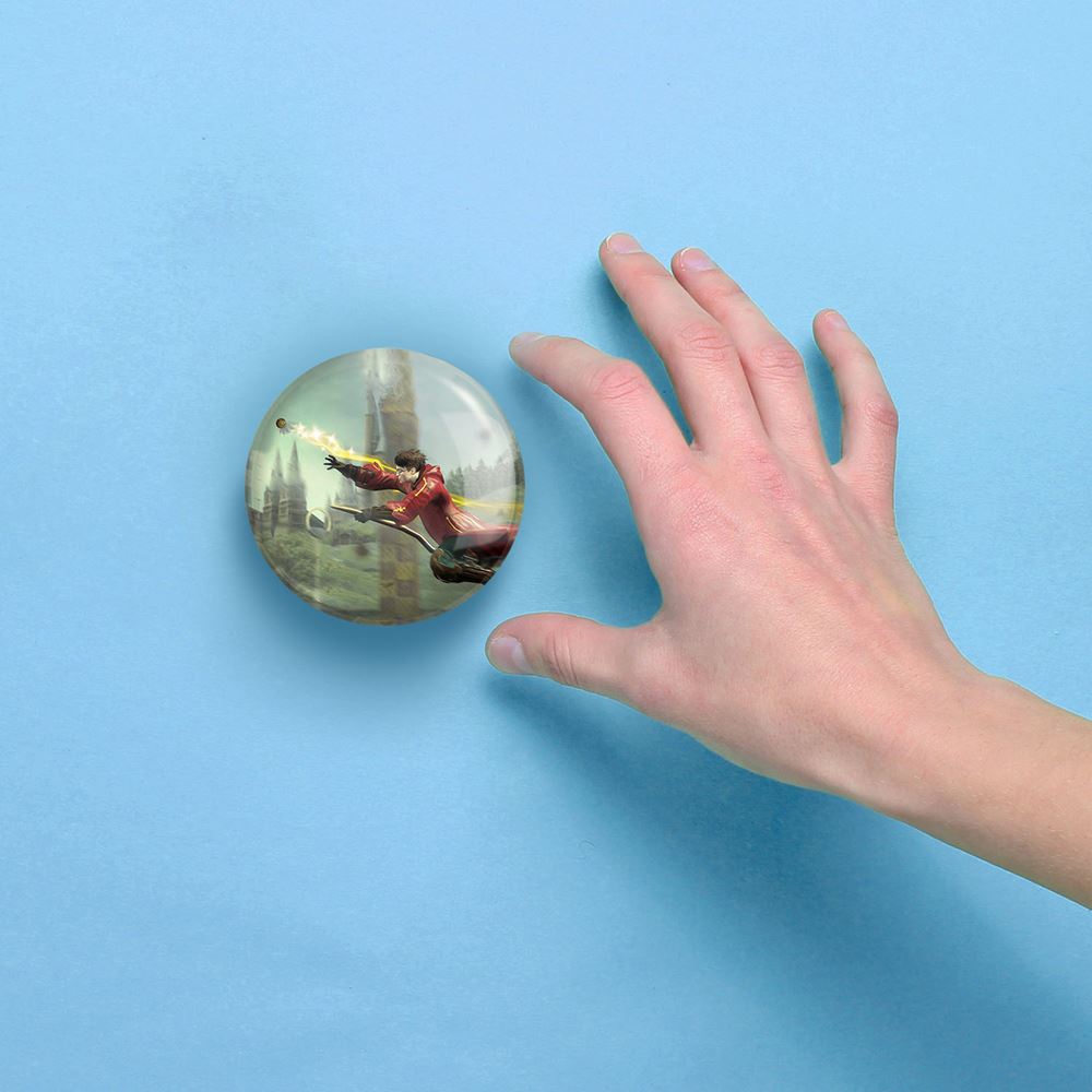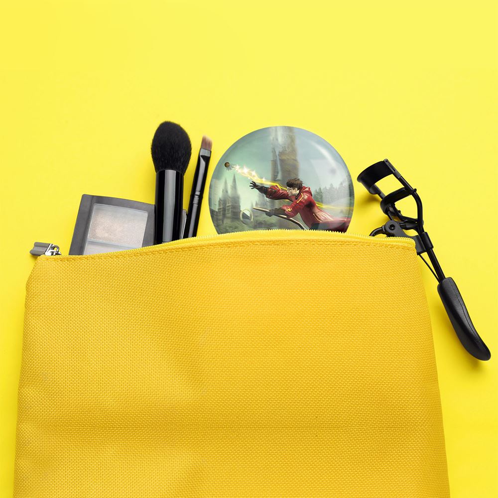 آینه های جیبی هری پاتر خندالو دایره ای به قطر 7.5 سانتی متر می باشد که نه خیلی بزرگ و غیر قابل استفاده در کیف آرایشی ست و نه خیلی کوچک که تصویر خاصی در آن مشاهده نشود. سایزی استاندارد و کارآمد دارد و مناسب قرار گیری در کیف لوازم آرایش و کیف های کوچک دستی نیز هست.
