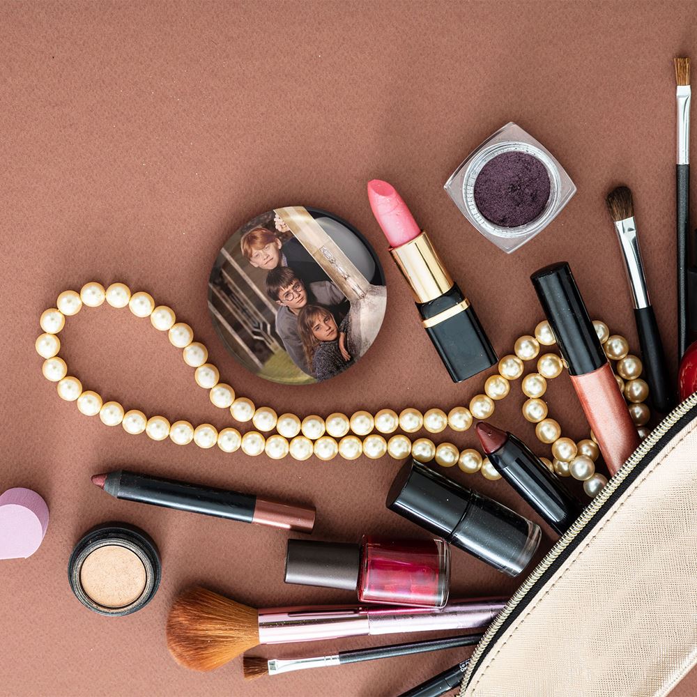 آینه های جیبی هری پاتر Harry Potter خندالو دایره ای به قطر 7.5 سانتی متر می باشد که نه خیلی بزرگ و غیر قابل استفاده در کیف آرایشی ست و نه خیلی کوچک که تصویر خاصی در آن مشاهده نشود. سایزی استاندارد و کارآمد دارد و مناسب قرار گیری در کیف لوازم آرایش و کیف های کوچک دستی نیز هست.