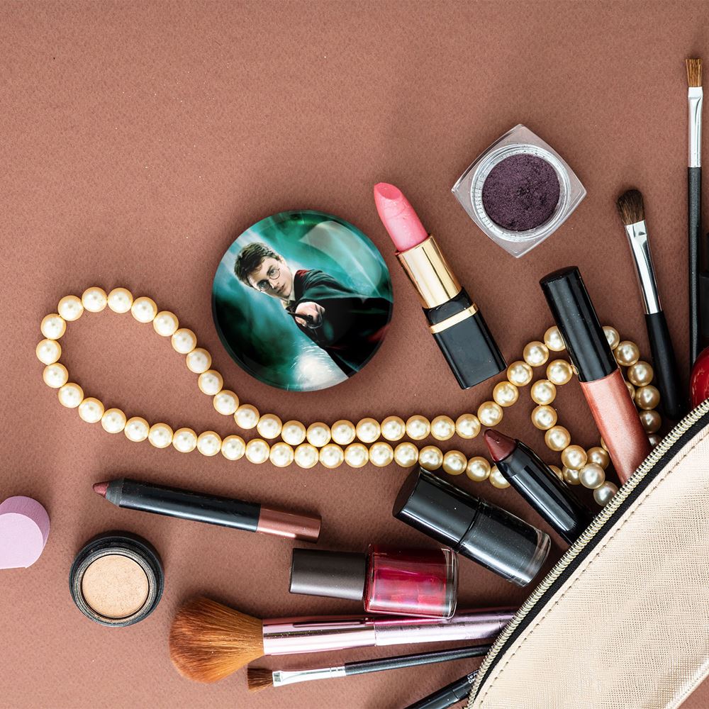 آینه های جیبی هری پاتر Harry Potter خندالو دایره ای به قطر 7.5 سانتی متر می باشد که نه خیلی بزرگ و غیر قابل استفاده در کیف آرایشی ست و نه خیلی کوچک که تصویر خاصی در آن مشاهده نشود. سایزی استاندارد و کارآمد دارد و مناسب قرار گیری در کیف لوازم آرایش و کیف های کوچک دستی نیز هست.