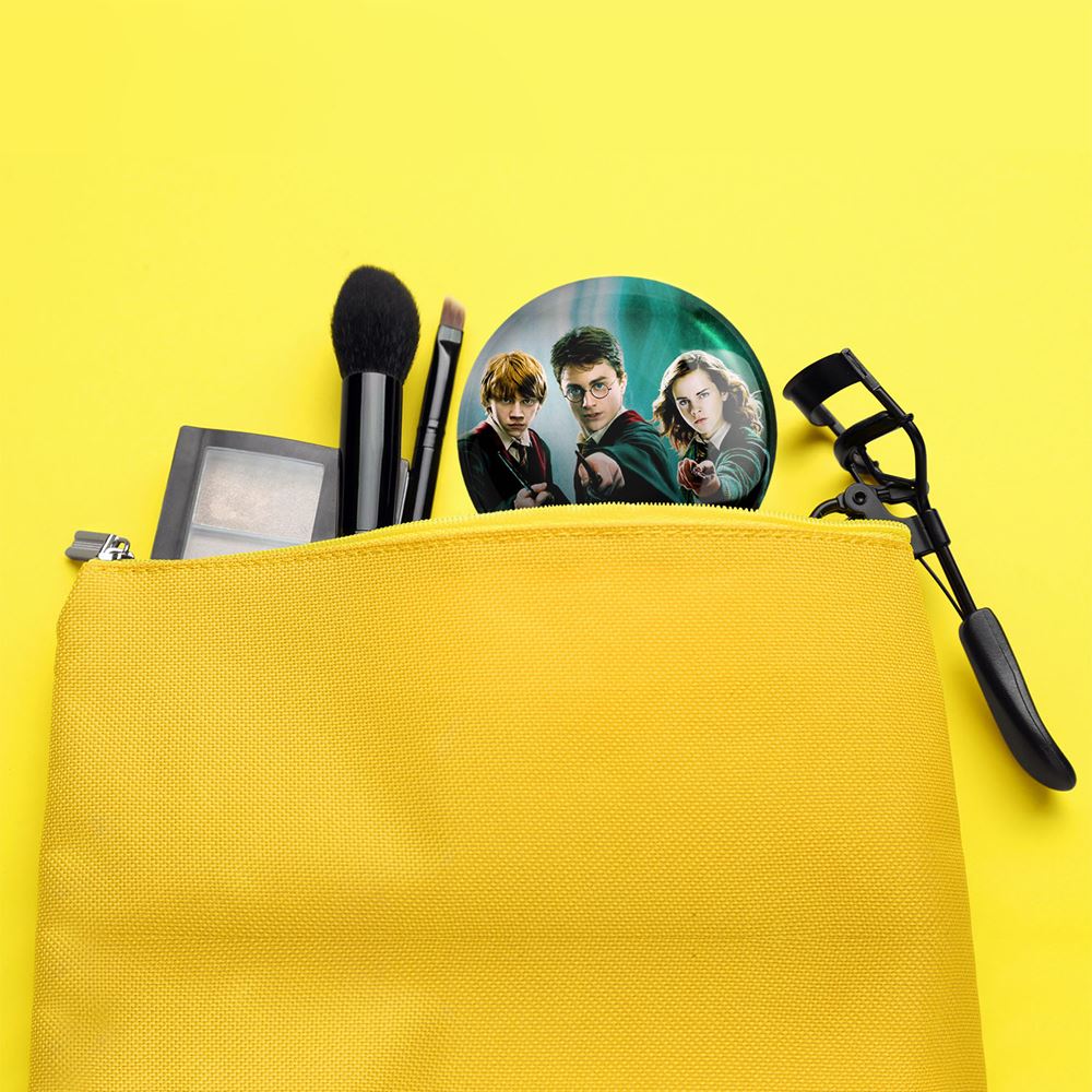 آینه های جیبی هری پاتر Harry Potter خندالو دایره ای به قطر 7.5 سانتی متر می باشد که نه خیلی بزرگ و غیر قابل استفاده در کیف آرایشی ست و نه خیلی کوچک که تصویر خاصی در آن مشاهده نشود. سایزی استاندارد و کارآمد دارد و مناسب قرار گیری در کیف لوازم آرایش و کیف های کوچک دستی نیز هست.