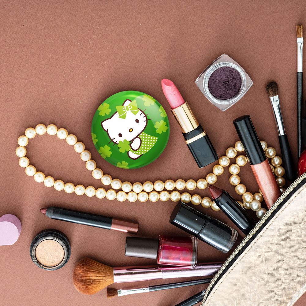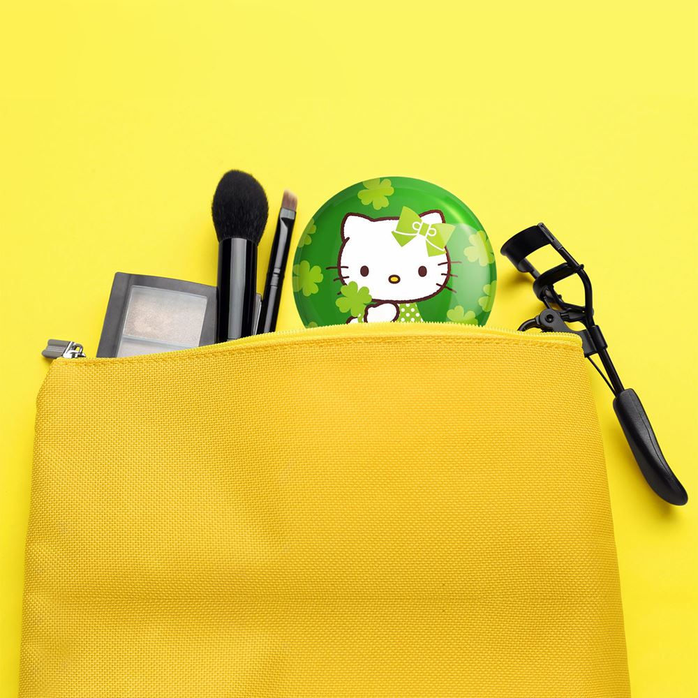 آینه های جیبی هلو کیتی خندالو دایره ای به قطر 7.5 سانتی متر می باشد که نه خیلی بزرگ و غیر قابل استفاده در کیف آرایشی ست و نه خیلی کوچک که تصویر خاصی در آن مشاهده نشود. سایزی استاندارد و کارآمد دارد و مناسب قرار گیری در کیف لوازم آرایش و کیف های کوچک دستی نیز هست.