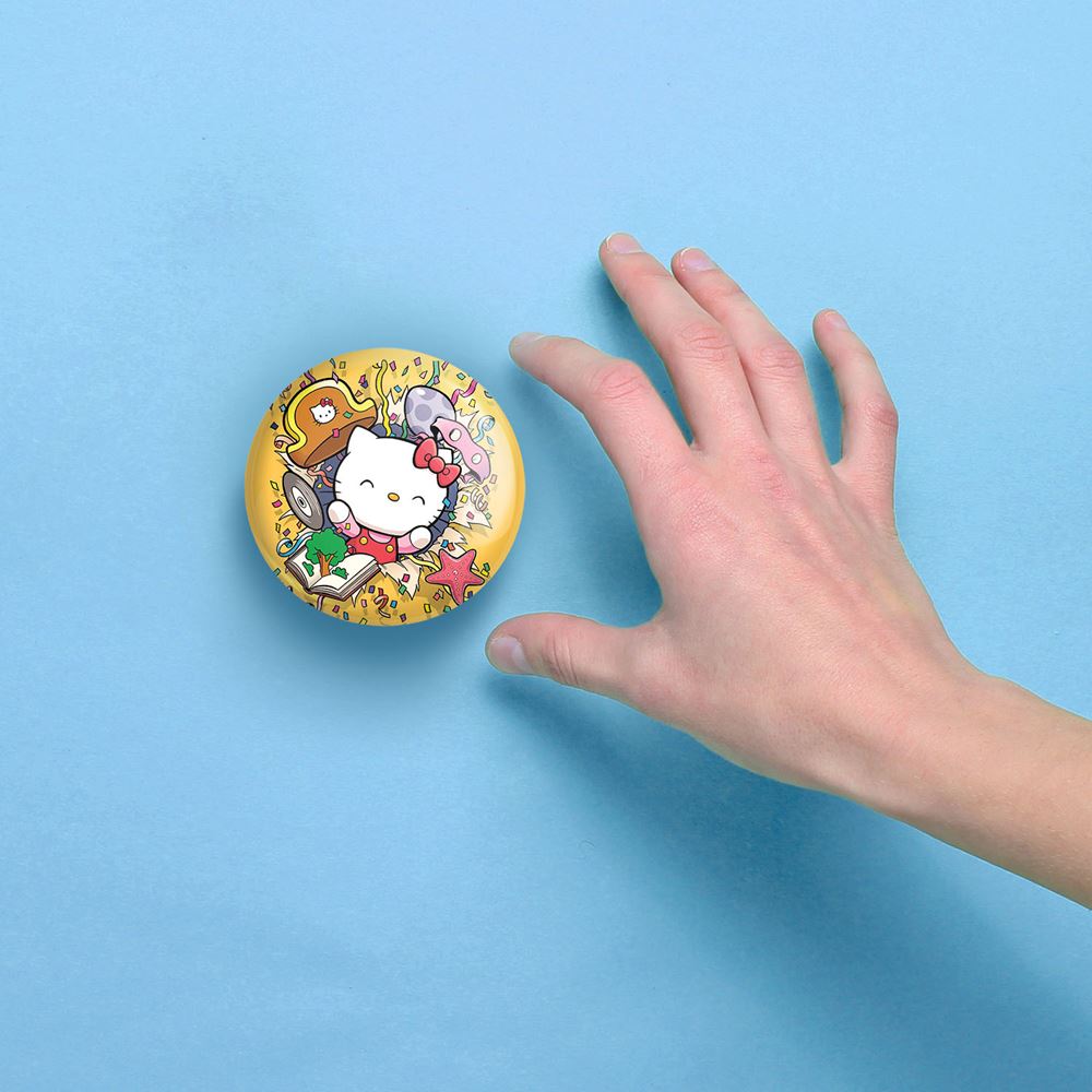 آینه های جیبی هلو کیتی خندالو دایره ای به قطر 7.5 سانتی متر می باشد که نه خیلی بزرگ و غیر قابل استفاده در کیف آرایشی ست و نه خیلی کوچک که تصویر خاصی در آن مشاهده نشود. سایزی استاندارد و کارآمد دارد و مناسب قرار گیری در کیف لوازم آرایش و کیف های کوچک دستی نیز هست. بدنه ی آینه جیبی هلو کیتی در قسمتی که آینه را در بر گرفته فلزی بوده و ظاهر براق و بسیار زیبایی دارد. چاپ طرح در پشت آینه بوسیله چاپگرهای دیجیتال شش رنگ با شفافیت و کیفیتی مثال زدنی انجام گرفته و با روکش لمینت حرارتی پوشیده شده که در مقابل آسیب و خط و خش مقاوم بوده و کیفیت بالایی دارد. آینه های جیبی هلو کیتی خندالو با تنوع طرحی بسیار بالا، سلیقه هر نوع مخاطبی را تامین میکند.