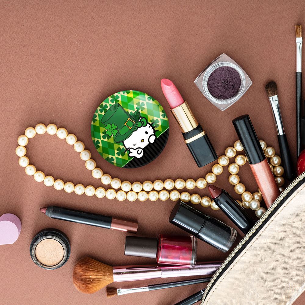 آینه های جیبی هلو کیتی خندالو دایره ای به قطر 7.5 سانتی متر می باشد که نه خیلی بزرگ و غیر قابل استفاده در کیف آرایشی ست و نه خیلی کوچک که تصویر خاصی در آن مشاهده نشود. سایزی استاندارد و کارآمد دارد و مناسب قرار گیری در کیف لوازم آرایش و کیف های کوچک دستی نیز هست.