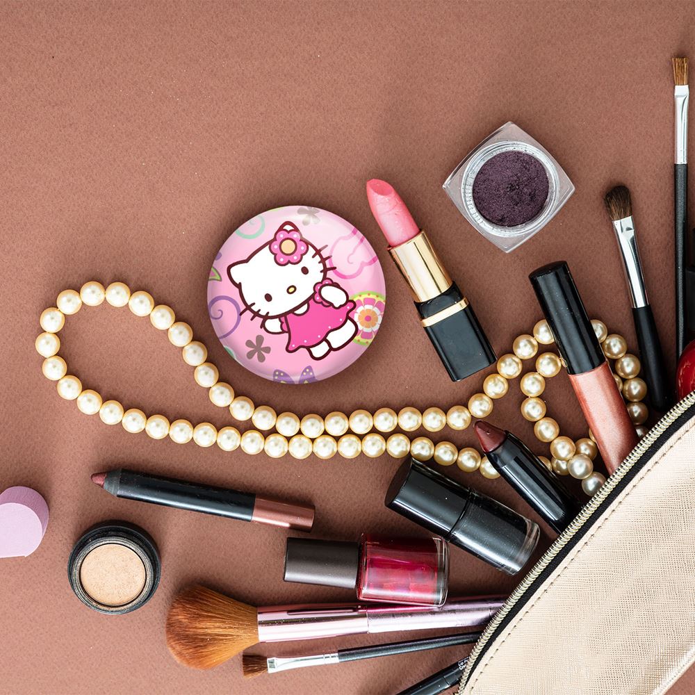 آینه های جیبی هلو کیتی خندالو دایره ای به قطر 7.5 سانتی متر می باشد که نه خیلی بزرگ و غیر قابل استفاده در کیف آرایشی ست و نه خیلی کوچک که تصویر خاصی در آن مشاهده نشود. سایزی استاندارد و کارآمد دارد و مناسب قرار گیری در کیف لوازم آرایش و کیف های کوچک دستی نیز هست.