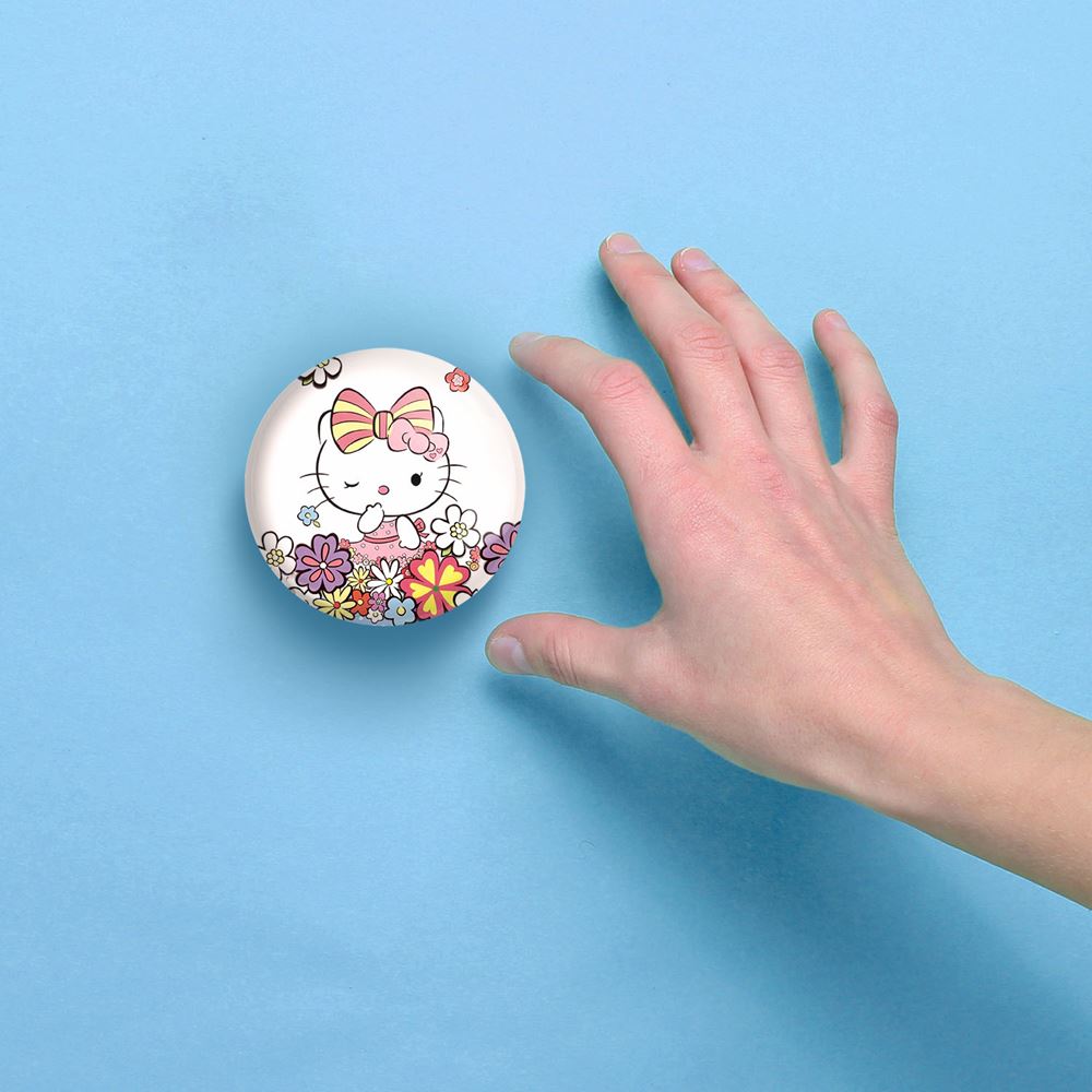 آینه های جیبی هلو کیتی Hello Kitty خندالو دایره ای به قطر 7.5 سانتی متر می باشد که نه خیلی بزرگ و غیر قابل استفاده در کیف آرایشی ست و نه خیلی کوچک که تصویر خاصی در آن مشاهده نشود. سایزی استاندارد و کارآمد دارد و مناسب قرار گیری در کیف لوازم آرایش و کیف های کوچک دستی نیز هست. بدنه ی آینه جیبی هلو کیتی Hello Kitty در قسمتی که آینه را در بر گرفته فلزی بوده و ظاهر براق و بسیار زیبایی دارد. چاپ طرح در پشت آینه بوسیله چاپگرهای دیجیتال شش رنگ با شفافیت و کیفیتی مثال زدنی انجام گرفته و با روکش لمینت حرارتی پوشیده شده که در مقابل آسیب و خط و خش مقاوم بوده و کیفیت بالایی دارد. آینه های جیبی هلو کیتی Hello Kitty خندالو با تنوع طرحی بسیار بالا، سلیقه هر نوع مخاطبی را تامین میکند.
