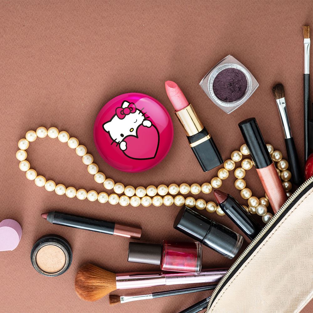 آینه های جیبی هلو کیتی Hello Kitty خندالو دایره ای به قطر 7.5 سانتی متر می باشد که نه خیلی بزرگ و غیر قابل استفاده در کیف آرایشی ست و نه خیلی کوچک که تصویر خاصی در آن مشاهده نشود. سایزی استاندارد و کارآمد دارد و مناسب قرار گیری در کیف لوازم آرایش و کیف های کوچک دستی نیز هست.